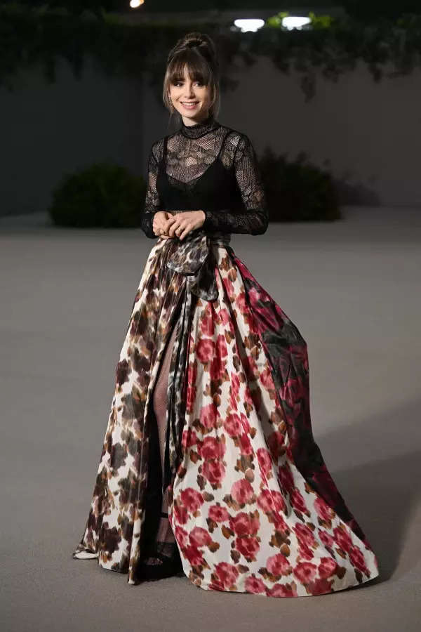Lily Collins๋ ๋ก์ค์ค์ ค๋ ์ค์์ ์ด๋ฆฐ Academy Museum Gala 2022์ ์ฐธ์ํ ๋ ์ฌ๋ฆฟ ์ํด ์ค์ปคํธ์ ์ธ๋ฏธ ํฌ๋ช ๋ธ๋ ๋ ์ด์ค ๋ฐ๋์ํธ๋ก ์นดํซ์ ๊ฝ์ ํ์ ๋ถ์ด๋ฃ์์ต๋๋ค.