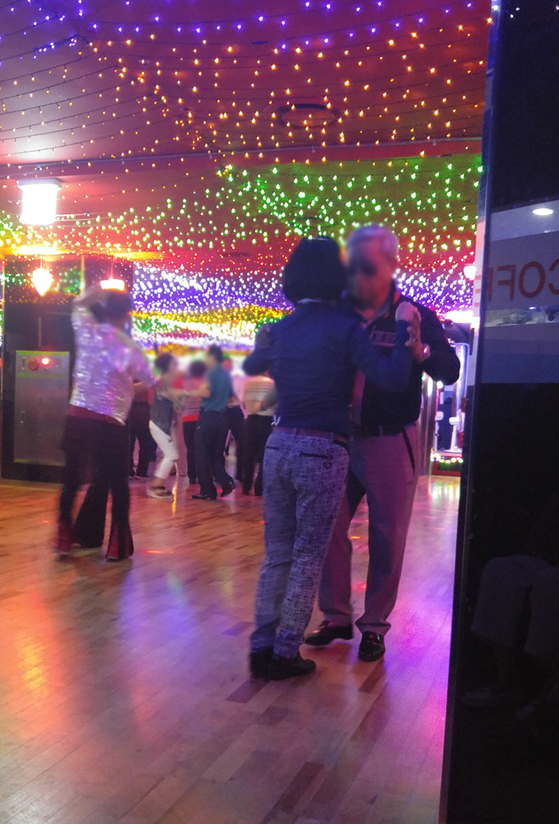 ์ฌ๊ต๋์ค์ ์คํฌ์ธ ๋์ค ๊ตฌ์ญ์ผ๋ก ๋๋ ์ง ๋ฌด๋์๋ ์ธ๋ฏธ ์ ์ฅ์ผ๋ก ๊ฐ์ถฐ ์ ์ ๋ ธ์ธ๋ค์ด ํํธ๋์ ํจ๊ป ์ถค์ ์ถ๊ณ ์์๊ณ ๊ฑฐ์ธ์ ๋ณด๋ฉฐ ํผ์ ์ถค์ ์ฐ์ตํ๋ ์ด๋ค๋ ์์๋ค.