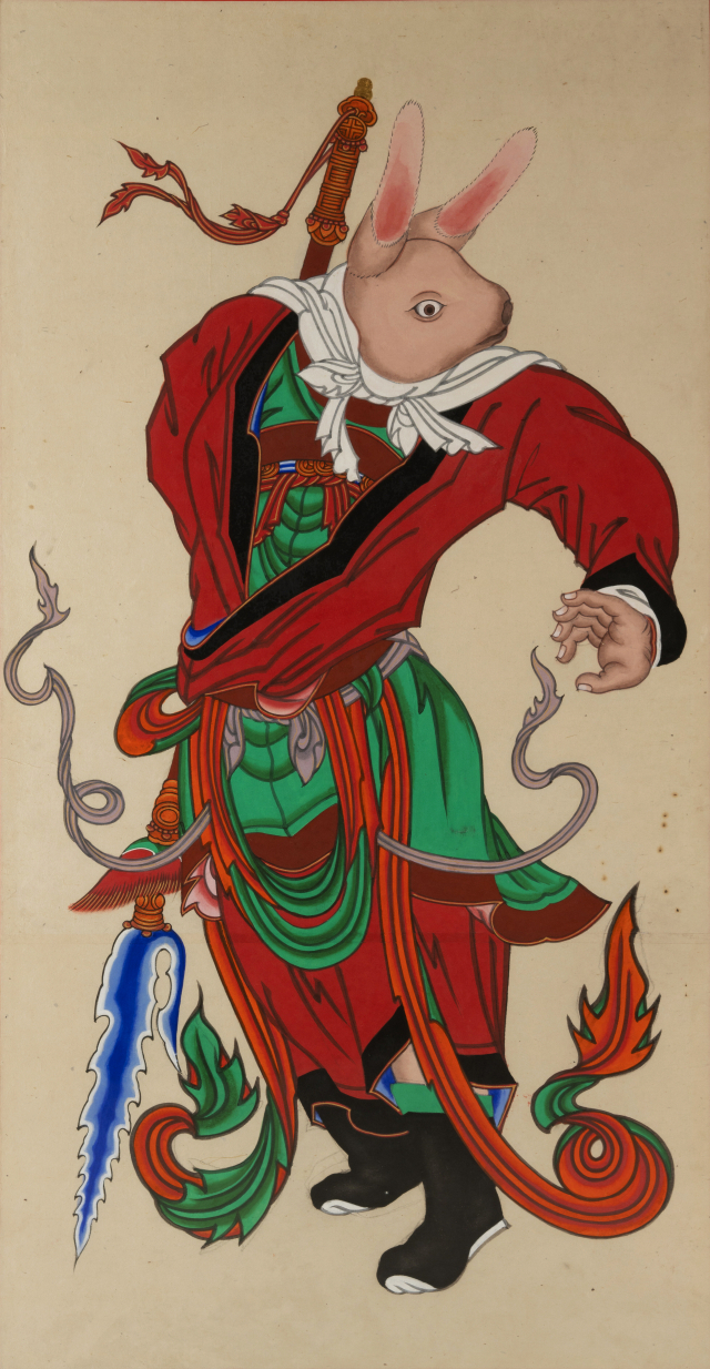 ํต์ผ์ ๋ผ ์๋์ ‘๋ฌ๊ณผ ํ ๋ผ ์๋ง์’. ์ค๊ฐ์ ๊ณ์๋๋ฌด, ์ค๋ฅธ์ชฝ์ ๋๊บผ๋น ํ์์ด๋ค.